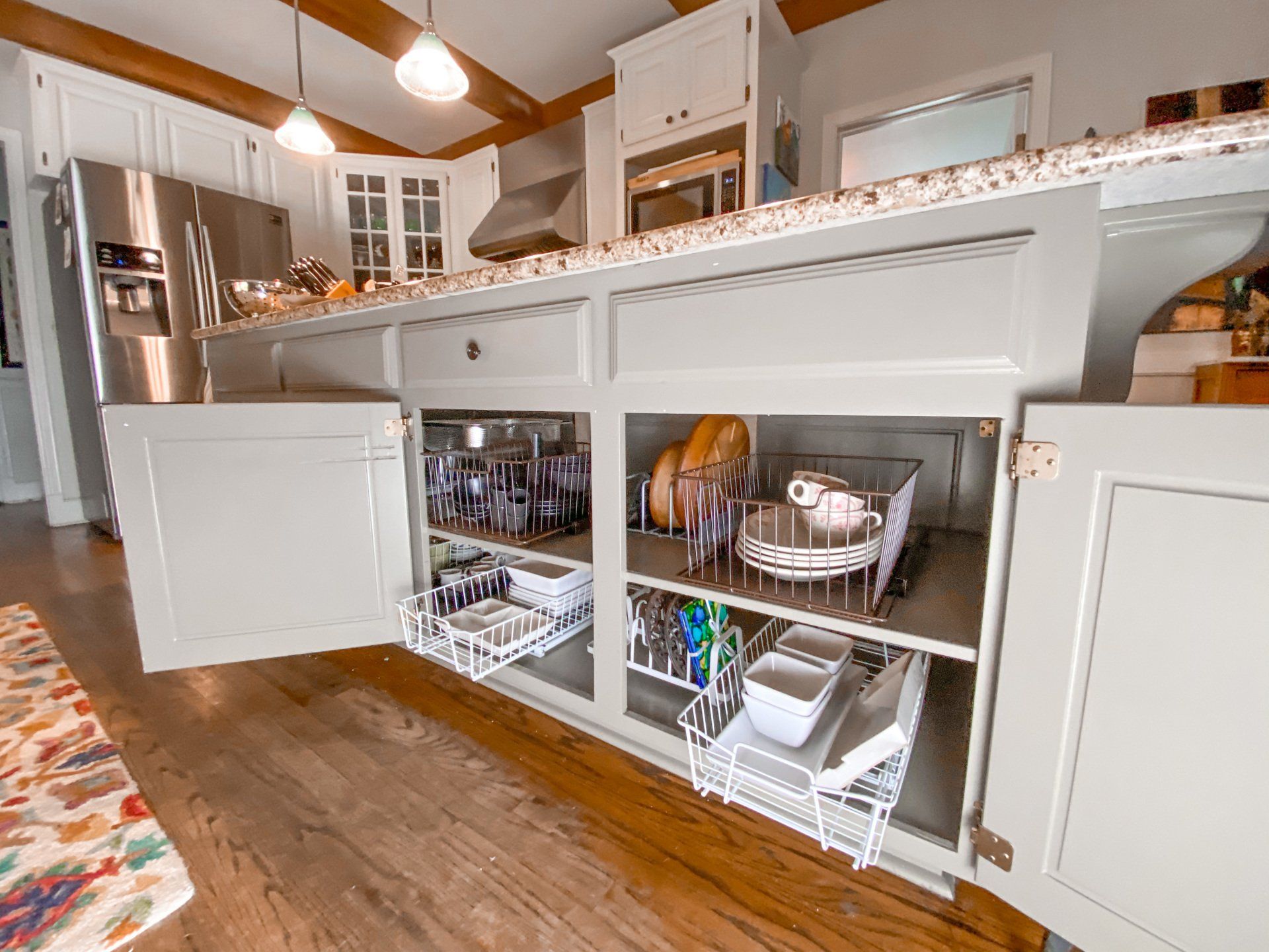 3. These roll-out shelves for heavy pots and pans are a lifesaver! No more having to take out every single item in your cabinets just to reach one thing!